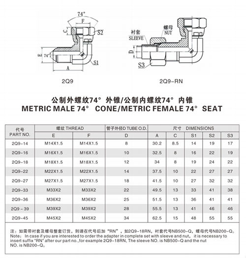 擴(kuò)口式管接頭—公制外螺紋74°外錐/公制內(nèi)螺紋74°內(nèi)錐