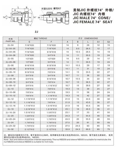 擴(kuò)口式管接頭—美制JIC 外螺紋74°外錐/ JIC 內(nèi)螺紋74°內(nèi)錐