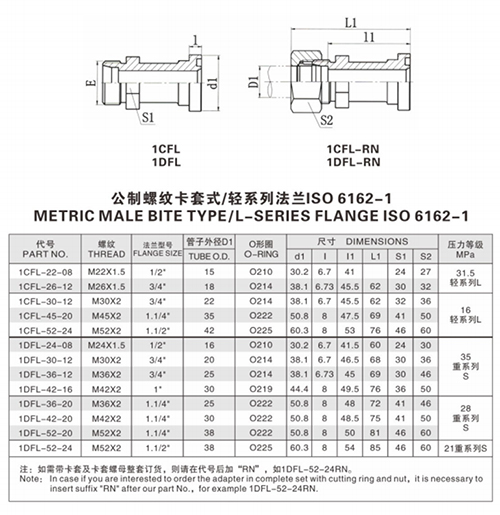法蘭接頭—公制螺紋卡套式/輕系列法蘭ISO 6162-1